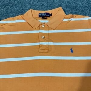Polo by Ralph Lauren Orange White Striped Short Sleeve Polo Shirt Size Large