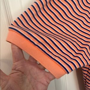 Polo by Ralph Lauren shirt with orange, blue and thin white stripe.