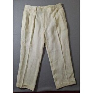Polo by Ralph Lauren Pants 42x29 100% Linen Vtg Off White Cuffed Trouser Slacks