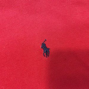 Red Short Sleeve Polo Shirt by Ralph Lauren. Polo features American classic styling with two buttons. 100% cotton. Great condition!