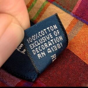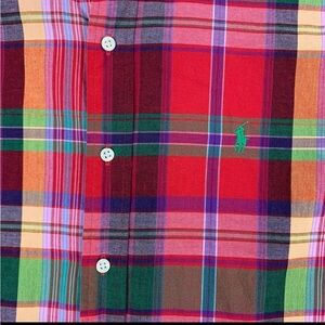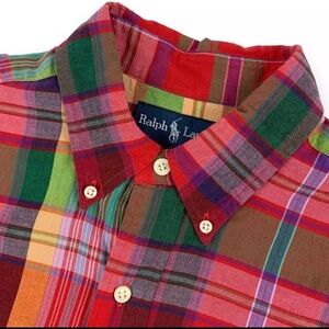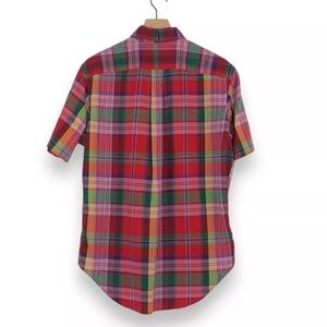 Polo by Ralph Lauren Red Green Orange Madras Plaid Short Sleeve Button Down L