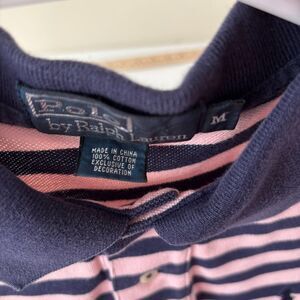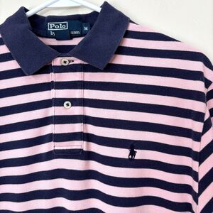 Polo by Ralph Lauren Striped Polo Shirt Men M Cotton Pink Navy Blue Pony Preppy