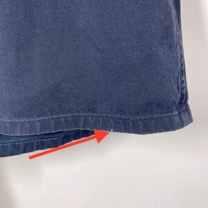 In great used vintage condition with minor flaws like pull/pill, tiny white spot/stain and light color bleeding inside pockets. Please see photos above. A sign of normal wear is present (i.e, wash and wear & fading color). Also, a sign of odor/smell from a fabric softener that I used. Polo by Ralph Lauren Vintage Men’s Chino Short. Size: 38. Color: Blue. Please let me know if you have questions.