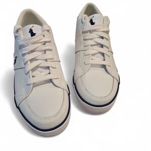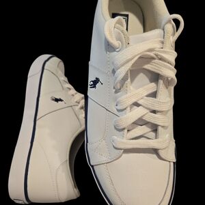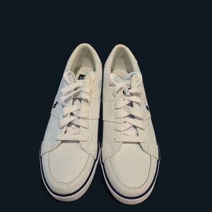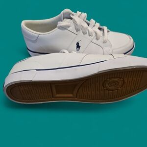 Classic white sneakers with iconic logo. Comfortable leather upper. Perfect for casual wear. minimal wear on soles. Please carefully review ALL pictures before purchasing as all are of the exact item being sold.