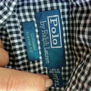 POLO by Ralph Lauren preppy, classic, Casual, business/casual/office sport shirt is crafted from soft cotton oxford black and white gingham print and designed with a relaxed fit. Button-down point collar and applied button placket. Long sleeves with buttoned barrel cuff and a Split back yoke with a box pleat. Shirttail hem