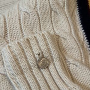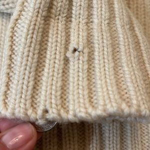 Polo by Ralph Lauren men’s medium 100%Wool. I went over the sweater few times there are pulls yarn appears to be stretched a bit. My free people have more holes and tears made that way ! Please look over pictures carefully. If you have any questions please ask before purchase thank you.