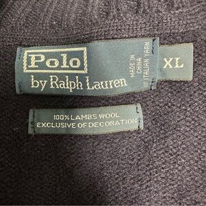 Polo by Ralph Lauren vintage Men's Dark Blue Zip-Up Sweater 100% lambs wool szXL