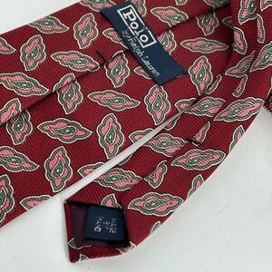 Up for sale is: Polo by Ralph Lauren Mens Necktie Red Silk Hand Made Paisley Print Pink GREen