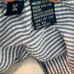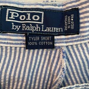 Polo by Ralph Lauren Tyler Short 34 Blue + White Seersucker Stripe