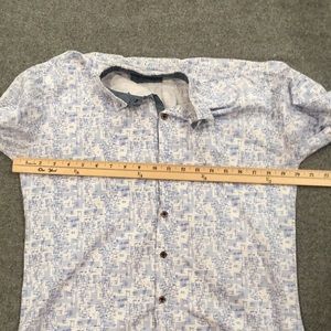 Repaired hole on right cuff. Price reduced to reflect wear. The shirt is in Good Condition. Missing material tag. Woven cotton fabric. Breathable. Preppy. Wedding. Fall. Winter. Measurements make it a boys Sz 10/12.