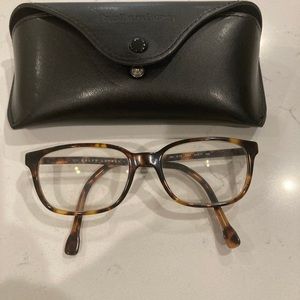 Blue and yellow arms, antique tortoise frames. Needs new lenses - unsure the prescription in them now.