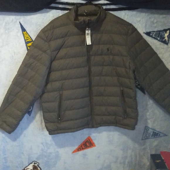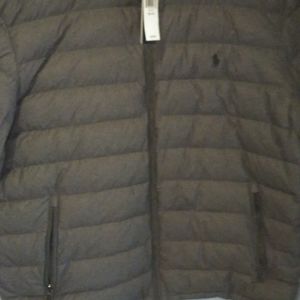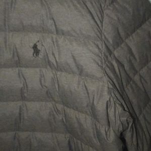 polo jacket grey with black horse light weight zip up and zip up pockets two inside pockets great outfit piece for fall and winter All depends on the weather brand new
