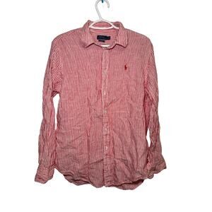 Polo ralph Lauren relaxed striped linen button down shirt mens large preppy