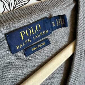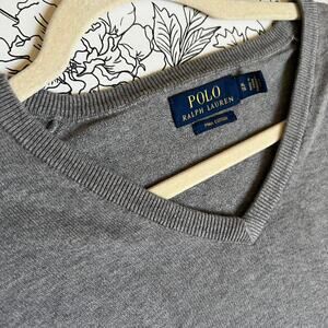 Polo Ralph Lauren 100% Pima Cotton Grey V Neck Sweater in size extra large