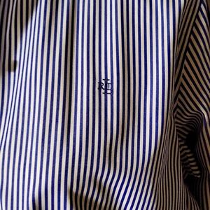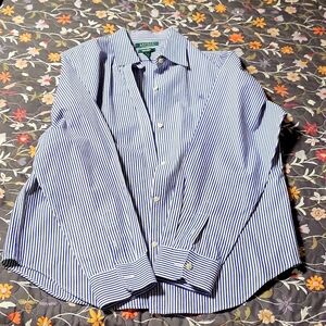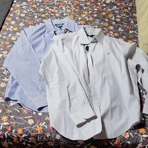 2 Ralph Lauren women shirts. Size Large. Both are stripes of different blues. Excellent condition, minimum wear. No holes, no stains. Smoke-free.