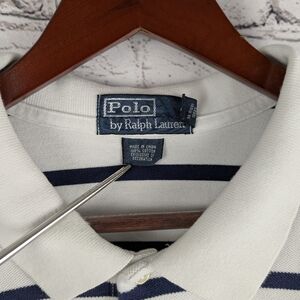 Polo short sleeve striped blue cotton shirt, pocket, XXL 2XL