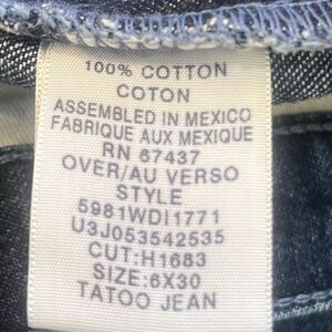 The flare leg boho , hippie style has a pattern on each leg. Vintage Tattoo Jean . Hard to find . This Ralph Lauren company discontinued this line in 2006.