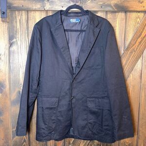 Polo Ralph Lauren Blazer 100%Cotton Jacket Old Money Black Sz 44L