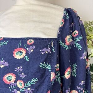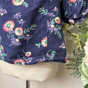 Polo Ralph Lauren Floral Linen Puff Sleeve Blouse | Navy | Size 12