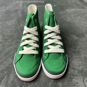 Elevate your child's sneaker game with the Polo Ralph Lauren Kelly Brisbane Hi 91718. This stylish and comfortable athletic shoe is perfect for walking and sports activities. It features a solid green color with a logo accent, a canvas fabric type, and a lace-up closure for a secure and customized fit.