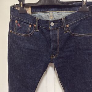 Polo Ralph Lauren men’s straight leg button fly dark wash jeans. Features 5 pocket design, belt loops, leather patch on back waist, RL embroidered on ticket pocket, dark wash, tan stitching.