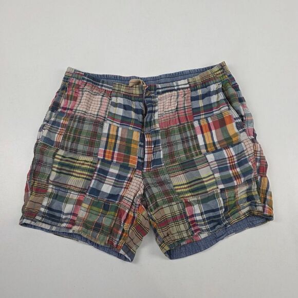 Polo Ralph Lauren Patchwork Madras Shorts 6" Mens Size Large Drawstring