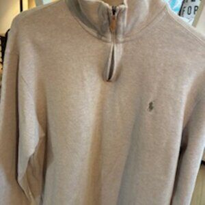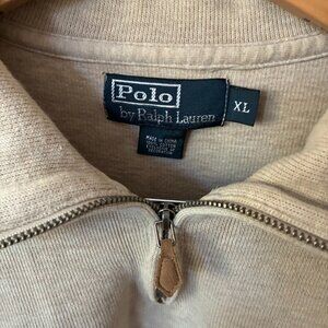 Polo by Ralph Lauren Quarter zip, ribbed sweater in Oatmeal color. Gently worn, XL.