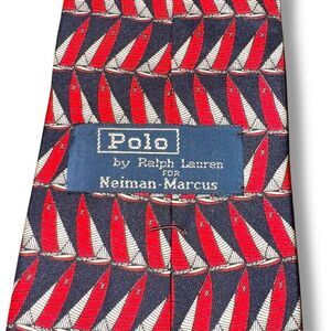 Polo Ralph Lauren Red & Navy Boat Print 100% Silk Handmade in USA Neck Tie