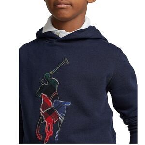 Polo Ralph Lauren boys plaid big pony fleece hoodie size S (8) Navy NWT in pkg