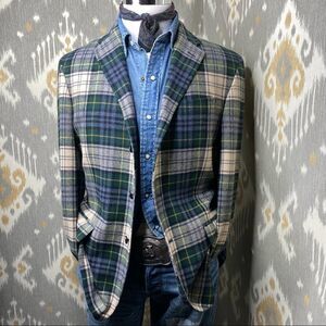Polo Ralph Lauren Wool Cashmere Blend Green Multi Gordon Tartan Plaid Sport Coat