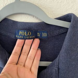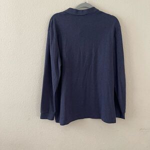 Size xlarge. Very soft knit long sleeve polo. No flaws. Blue color.
