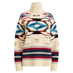 Polo Ralph Lauren 18 Ivory Multi Southwestern Aztec Geometric Turtleneck Sweater