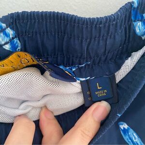 Elastic waist. Mesh lining. Blue with blue birds on it.