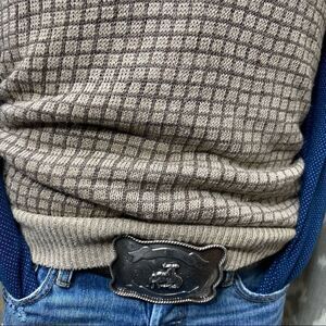 This vintage sweater vest unites a traditional checked pattern with a luxe linen yarn, in perfectly neutral tones.
