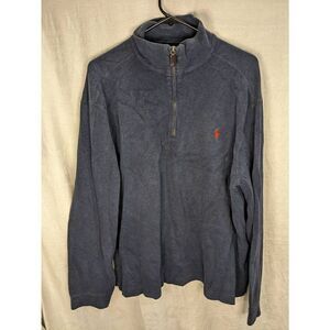 Polo by Ralph Lauren Quarter Zip 100% Cotton Pullover Sweater Navy L Large Mens