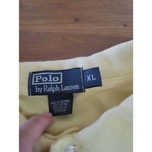 Polo by Ralph Lauren Mens Polo. Pale yellow. Good condition. Size XL, approximate measurements in photos.