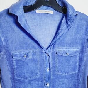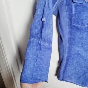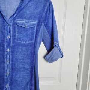Pologarage Shirt Womens Medium Blue Long Sleeve Button Up Chest Pockets Casual