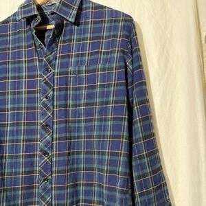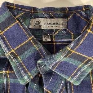 Polomeisdo Button Up Men's Medium Plaid Green Navy Yellow Slim Fit Sz 39 Europe
