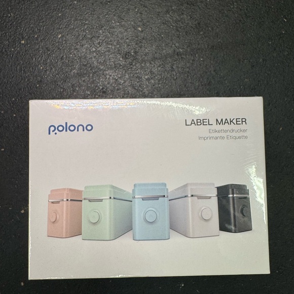 Polono label maker set featuring pastel and black colors. Compact and stylish design. Brand new!