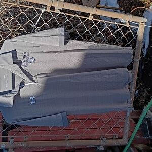 Two Under Armour poles. Grey short sleeve South Dakota Mines Women's Basketball polo. Blue Long sleeve South Dakota Mines Women's Basketball polo. Both size large heatgear.