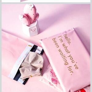 Business Design: These poly mailers with the text " hello. I'm what you've been waiting for" in different colors, black, pink, white and mint