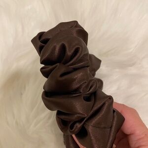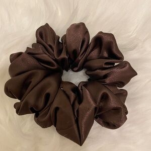 Poly Satin Hair Scrunchie. Dark Brown. Medium