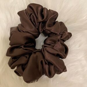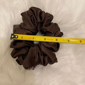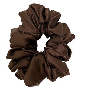Poly Satin Hair Scrunchie. Dark Brown. Medium. 100% Polyester. Machine Wash Cold. Lay Flat to Dry.Measurements shown in the photos. Machine wash cold. Lay flat to dry.
