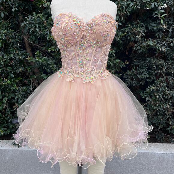 Poly USA by Neblon Rhinestone Floral Tulle Pink Fairy Tutu Dress Formal Small