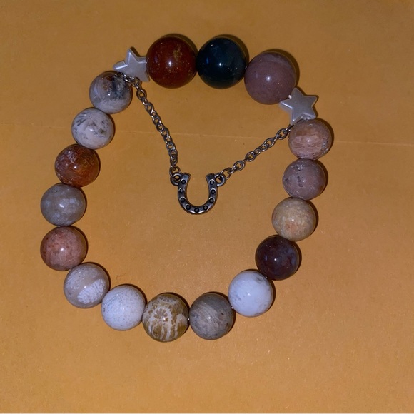 This is a handmade bracelet by myself. It’s a beautiful 8mm beaded bracelet with 3 10mm beads. Sure to bring good luck 🍀