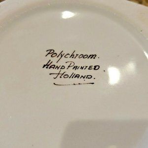 Polychroom Hand Painted Holland Hexagon Floral Glazed Dish Bowl Container