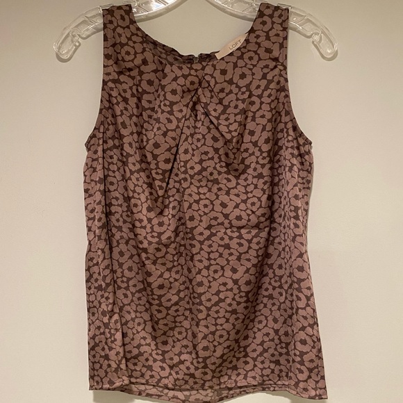 Brown floral print tank top shirt. A petite MP size. Some layering in the front on top. Very soft and silky material.