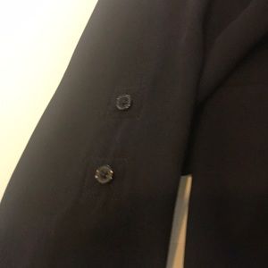 Polyester blouse. Can roll sleeves up and button. V neck button up with pocket on left