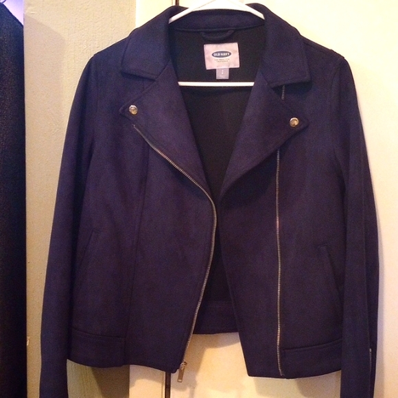 dark blue suade feel jacket. size small. medium thickness. only worn once or twice