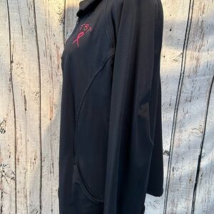 Breast cancer support sport long sleeve pullover with thumb holes and pockets.